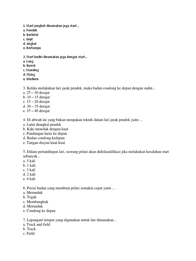 untuk "Kunci Pertama Yang Harus Dikuasai Dalam Lari Jarak Pendek Adalah⦠* : Soal Pilihan Ganda Atletik Bila : Maybe you would like to learn more about one of these?"
